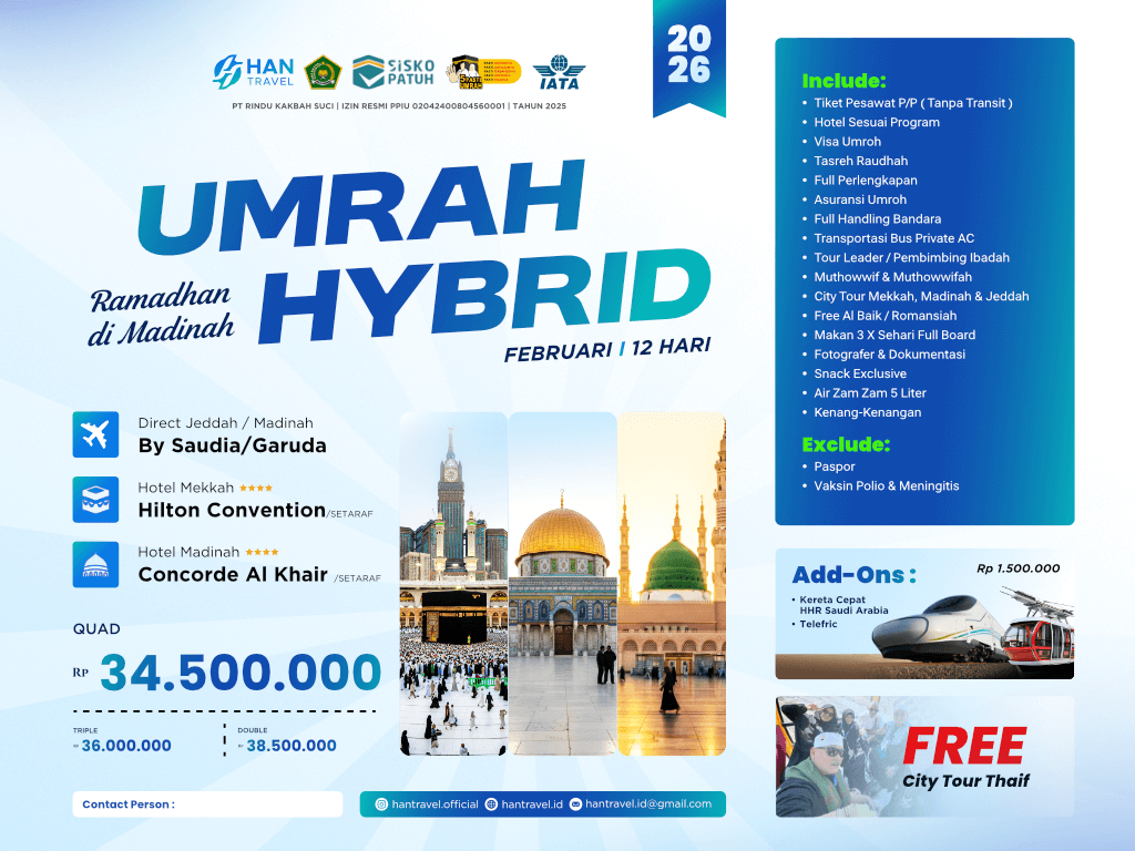 - 30 hari sebelum tanggal keberangkatan, dikenakan biaya pembatalan sebesar 25% dari harga paket.